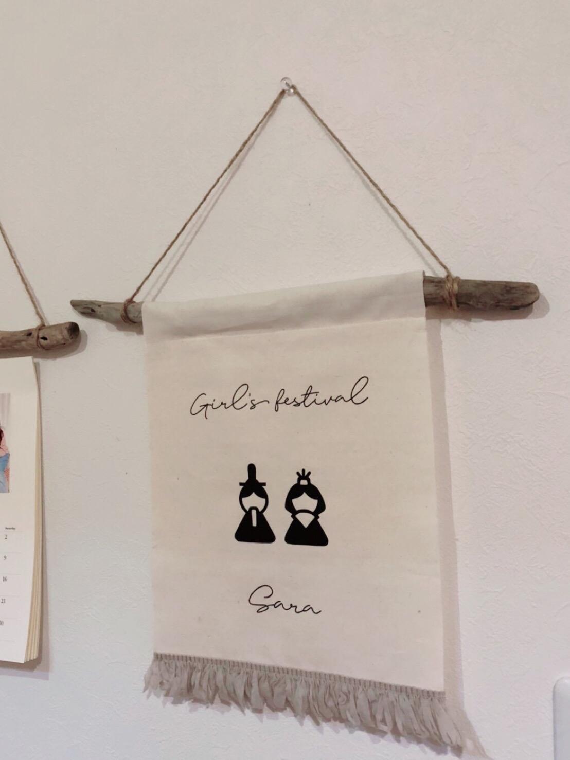 作っていただいたひな祭りのタペストリーが届いたので流木でアレンジし飾り付け〜