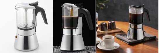 一応紹介する製品はコレだ!「中が見える!エスプレッソメーカー450ml」なる製品。弊社ギフト担当N師匠が、巨大なる中国広州交易会で、疲労困憊しながらも発見した製品である。市井の一般的なエスプレッソメーカーは、アルミ製かステンレス製であり、抽出状態が見えない。本製品は容器がガラス製であり、抽出具合が一目瞭然。且つ特殊構造の抽出口であり、エスプレッソがブシューッと吹き出さず、スムーズに抽出されるのである。休日には、この製品を使用したエスプレッソを楽しもうではないか!