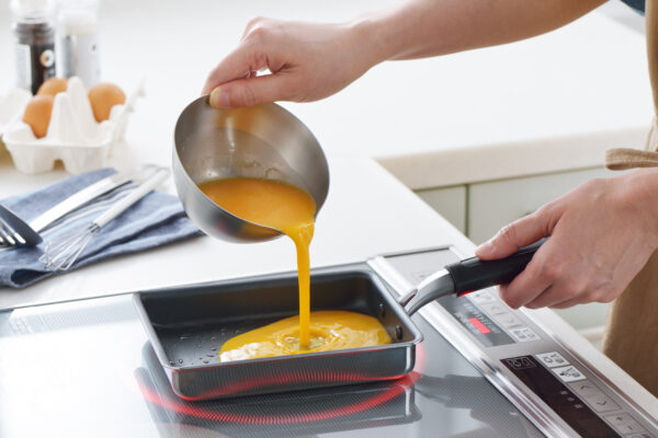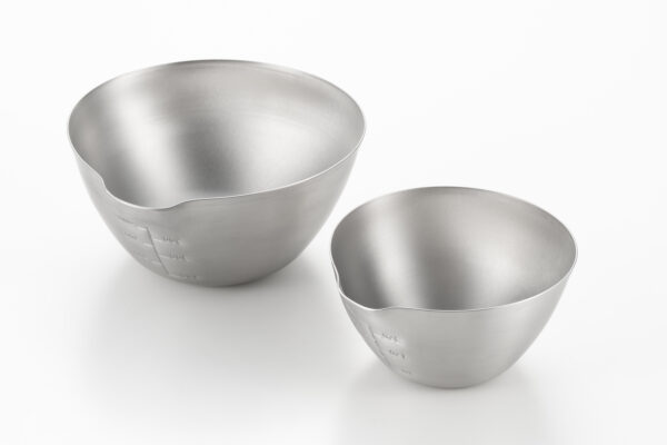 お弁当などの卵焼き作りにも丁度良い深さ大きさの大小コンビ。フライパンに流し入れやすく、垂れない注ぎ口。丈夫なステンレス。毎日ガンガン使えるタフな相棒としてぜひお使いいただきたい逸品です。
