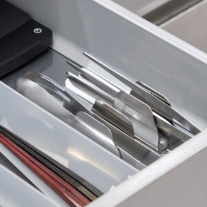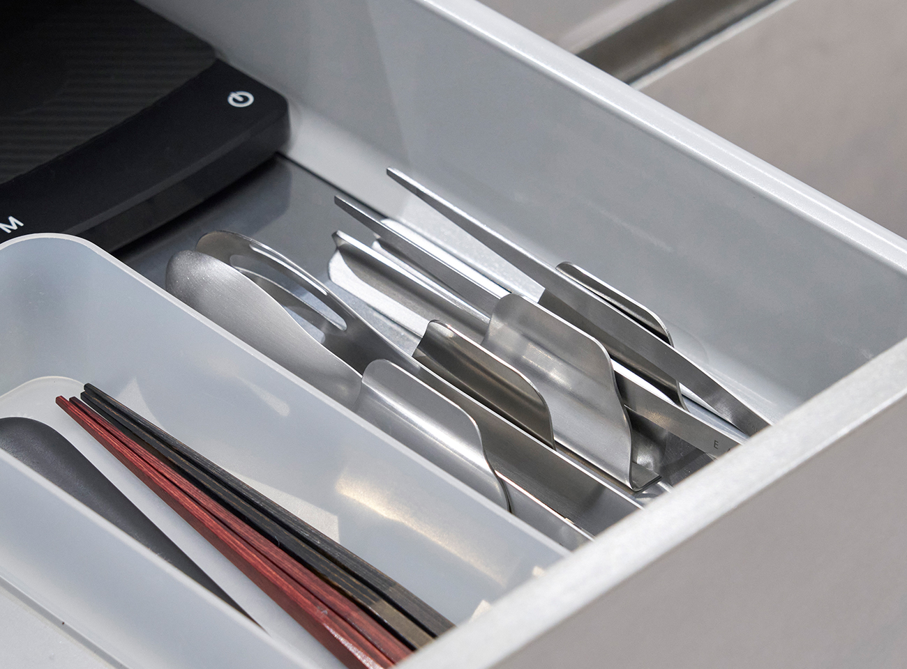 トングの開きをおさえ、コンパクトに収納できるホルダー。食卓では一時置きとして、テーブルが汚れず衛生的です。